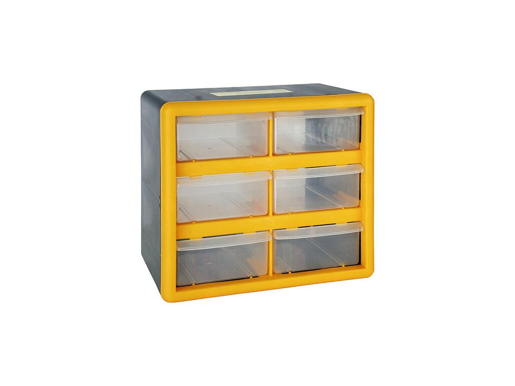 - Zabezpečuje praktické a prehľadné uskladnenie skrutiek, matíc, podložiek a podobného materiálu vďaka 6-im zásuvkám.