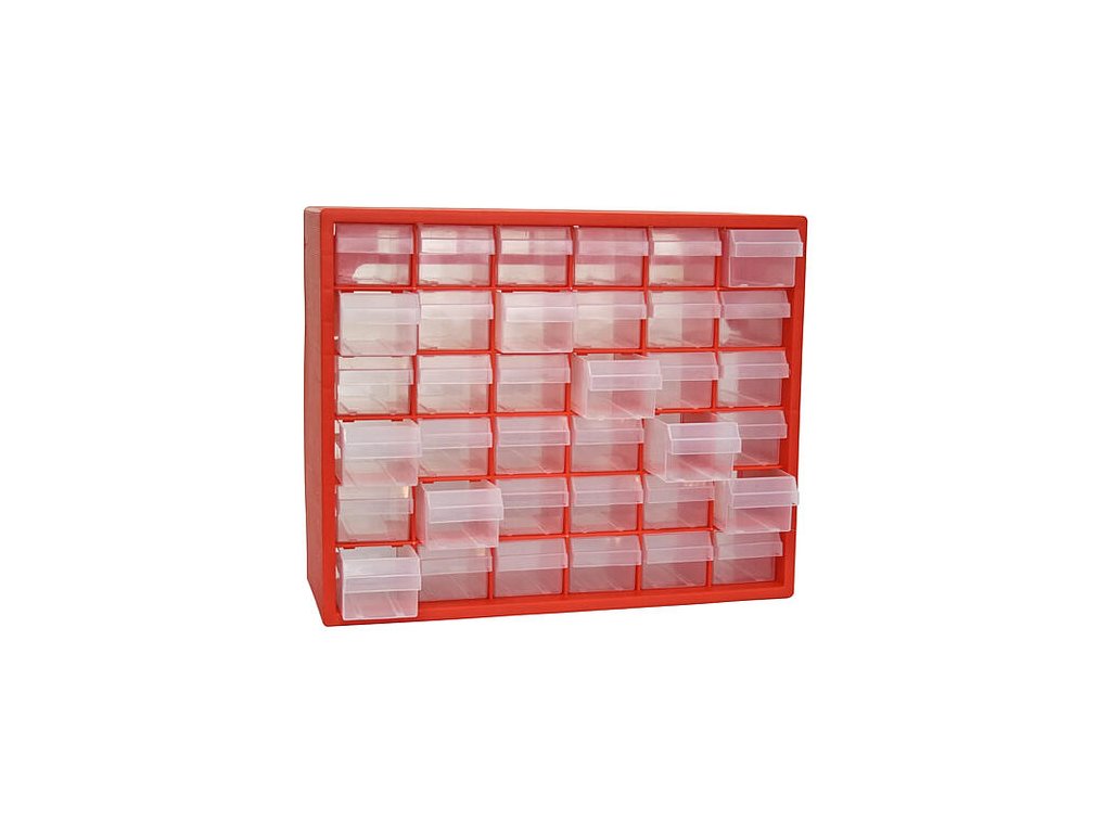 - Zabezpečuje praktické a prehľadné uskladnenie skrutiek, matíc, podložiek a podobného materiálu vďaka 36-tim zásuvkám.