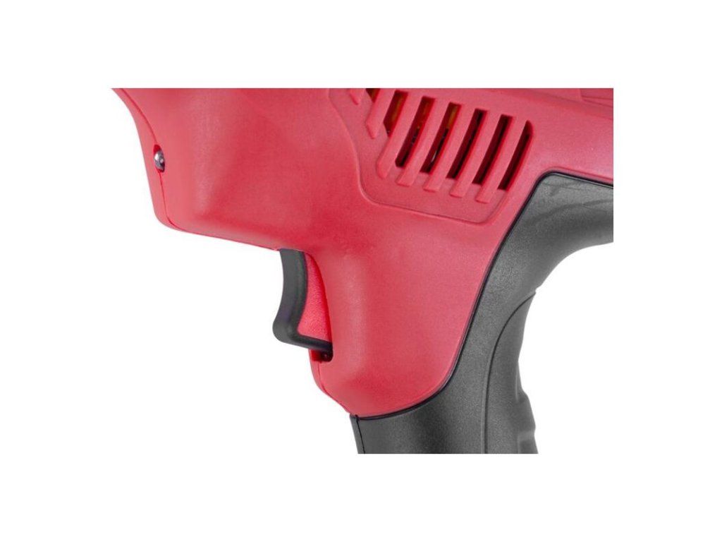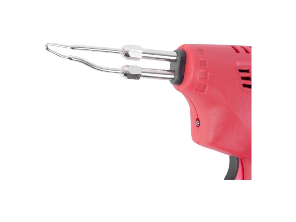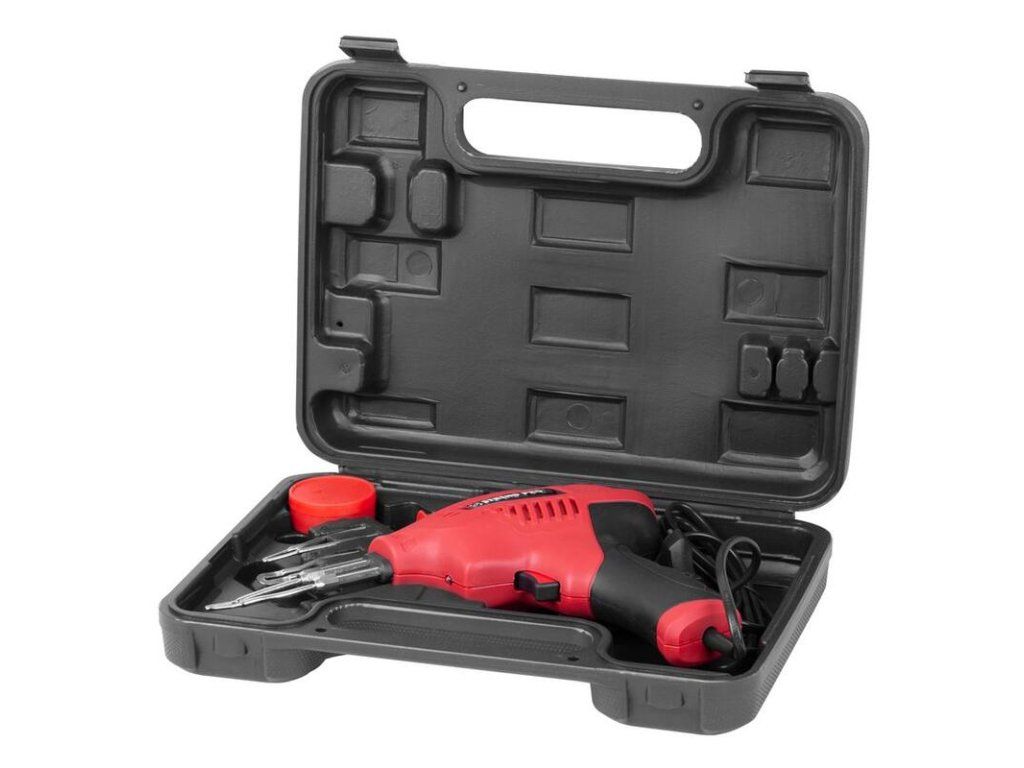 Spájkovacia pištoľ disponuje kompaktnými rozmermi a nízkou hmotnosťou. Je vybavená praktickým LED osvetlením a pogumovanou rukoväťou pre lepšie uchopenie. Teplotu je možné regulovať podľa potreby a vykonávanej činnosti (spájanie/ rezanie plastu 70 – 200° C, mäkké spájkovanie 200 – 350° C, vypaľovanie symbolov na drevo a mäkké spájkovanie 350 – 500° C). Spájkovacia pištoľ a príslušenstvo sú dodávané spolu, v praktickom kufríku.