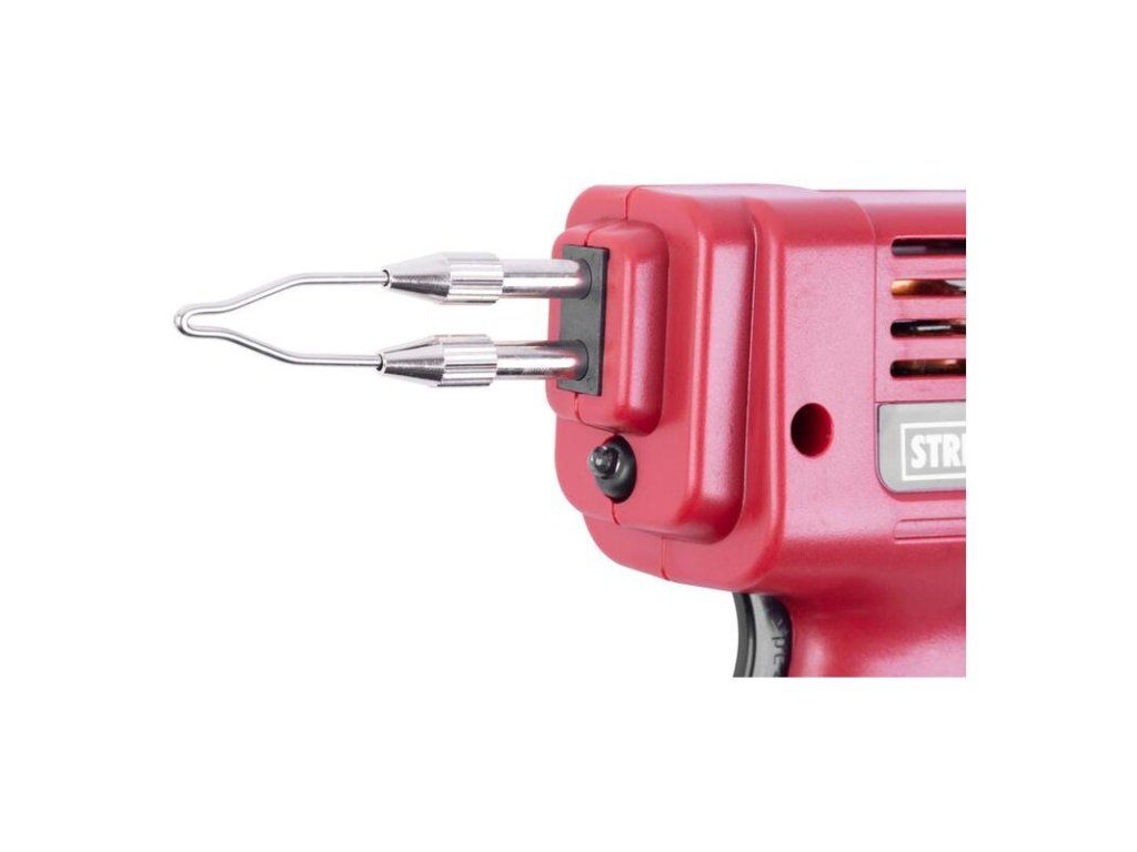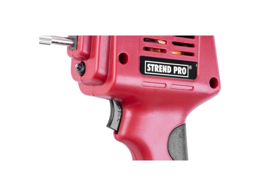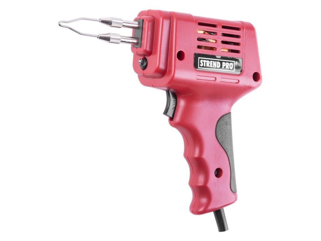 Transformátorová spájkovacia pištoľ Strend Pro SGS 98C je hobby náradie na domáce použitie. Určená je na vytváranie spájaných spojov pomocou cínovej spájky, spájanie plastov alebo vypaľovanie do dreva či kože. Pri prvom ohriatí spájkovacieho hrotu je potrebné okamžite ho ocínovať, inak dôjde k znehodnoteniu jeho povrchu oxidáciou, čo spôsobí zlú priliehavosť cínovej spájky.