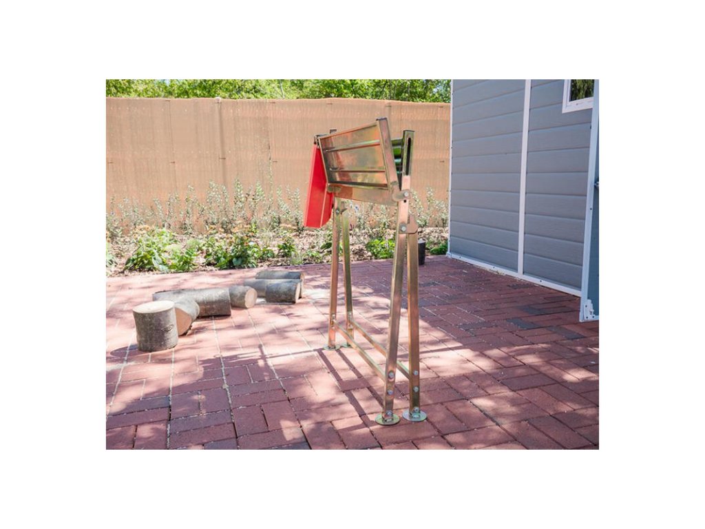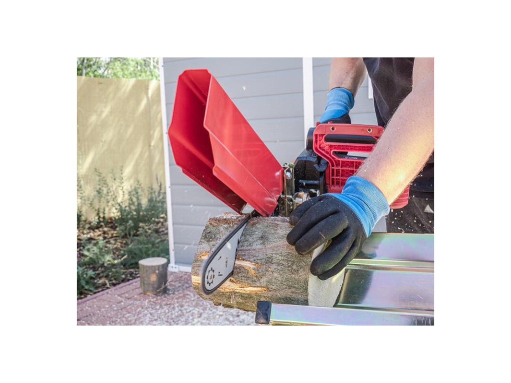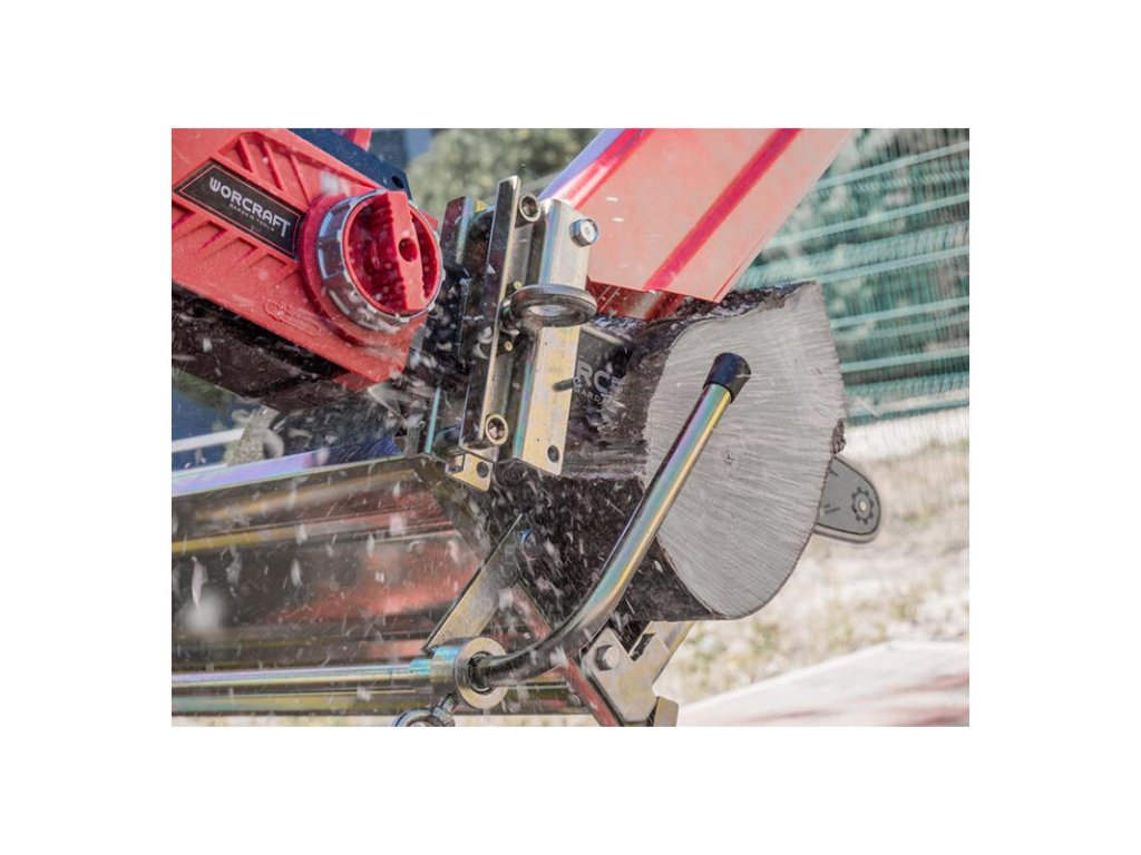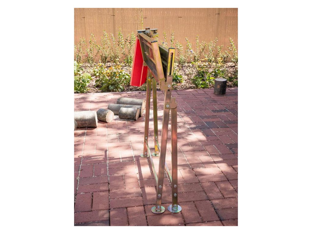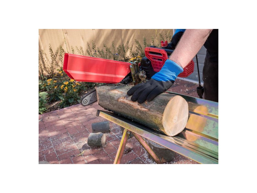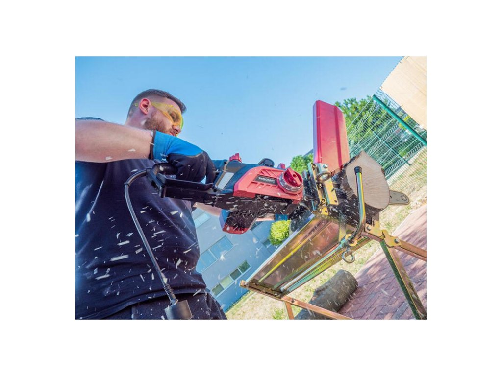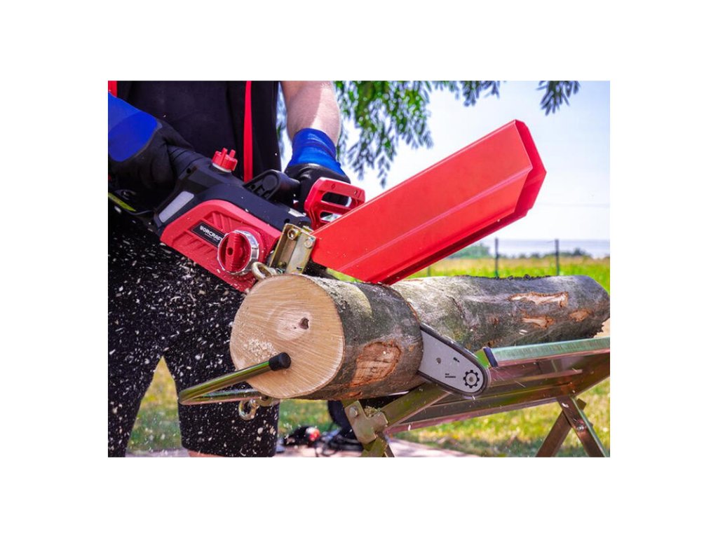 Stojan na rezanie dreva s držiakom reťazovej píly umoźňuje rezanie guľatiny, dosiek, paliet alebo trámov.
