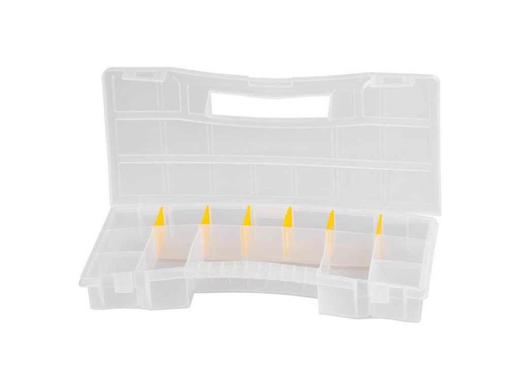 - Priehľadné veká zabezpečujú komfortný prehľad obsahu kufríka.