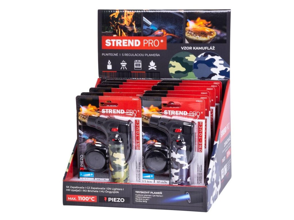 Zapaľovač Strend Pro v peknom kamuflážovom dizajne v kompaktných rozmeroch.