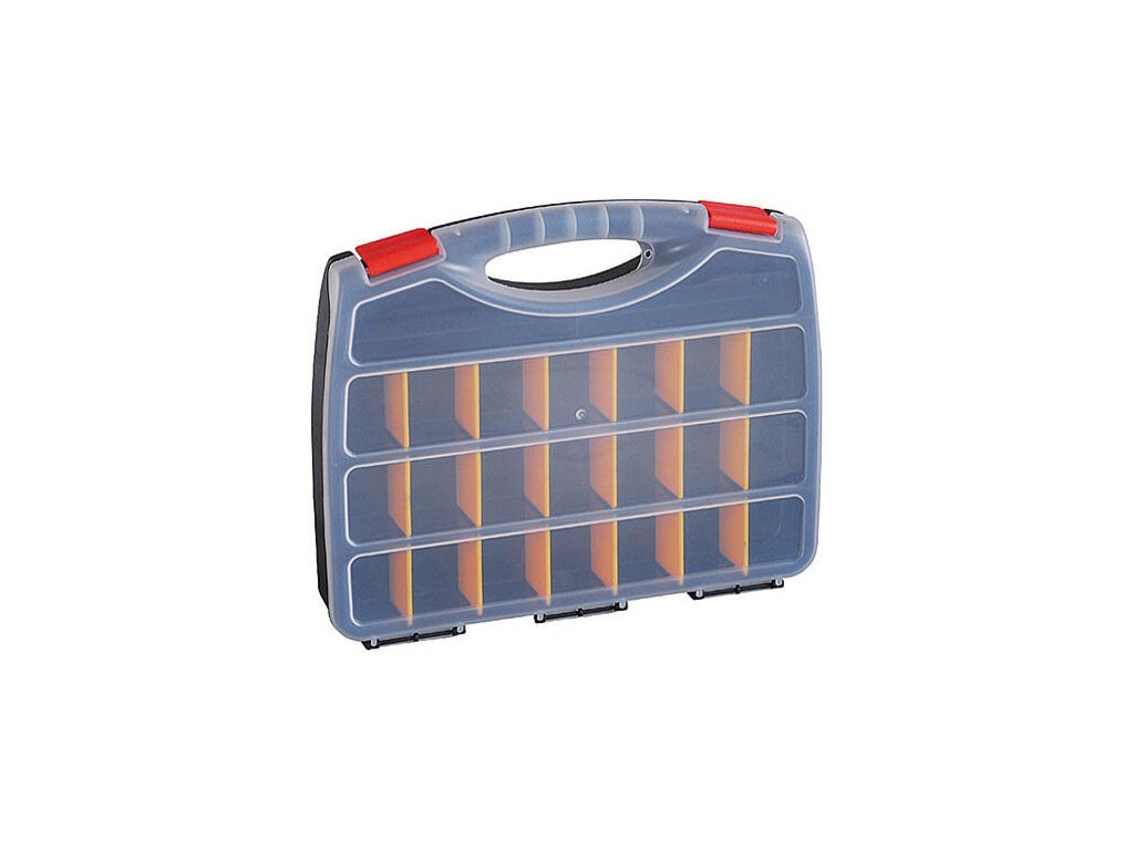 - Zabezpečuje praktické a prehľadné uskladnenie skrutiek, matíc, podložiek a podobného materiálu vďaka 21 priečkam.