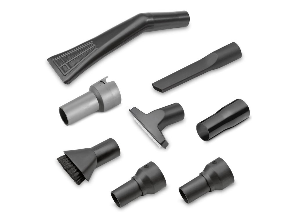 Súprava príslušenstva s priemerom DN 35 vyvinutá na dôkladné čistenie čalúnenia, koberčekov, škár a prístrojov vo vozidlách pomocou mokro-suchých vysávačov. Obsahuje hubicu na vysávanie auta, hubicu na čalúnenie, štrbinovú hubicu a sací štetec. Do súpravy patria aj špeciálne adaptéry s klipovým systémom s priemermi DN 35 a DN 40, ktoré umožňujú používanie starších aj nových mokro-suchých vysávačov značky Kärcher. Okrem toho tieto adaptéry dovoľujú pripojiť hubice priamo na saciu hadicu bez použitia kolena a pracovať tak v stiesnenom interiéri auta ešte flexibilnejšie.
