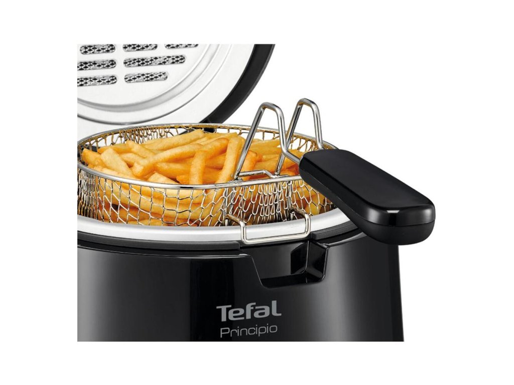 Fritéza Principio pracuje s príkonom 1 000 W. Fritéza pripraví až 600 g hranolčekov či iných vyprážaných pokrmov len s 1,2 l oleja. Prístroj spúšťa jednoduchým spínačom na zadnej strane. Fritéza frituje potraviny pri teplotách od 150 °C do 190 °C. Pri varení je možné použiť veko s kovovým filtrom. Po vyprážaní sa fritéza ľahko čistí. Kôš a rukoväte je možné umývať v umývačke riadu.