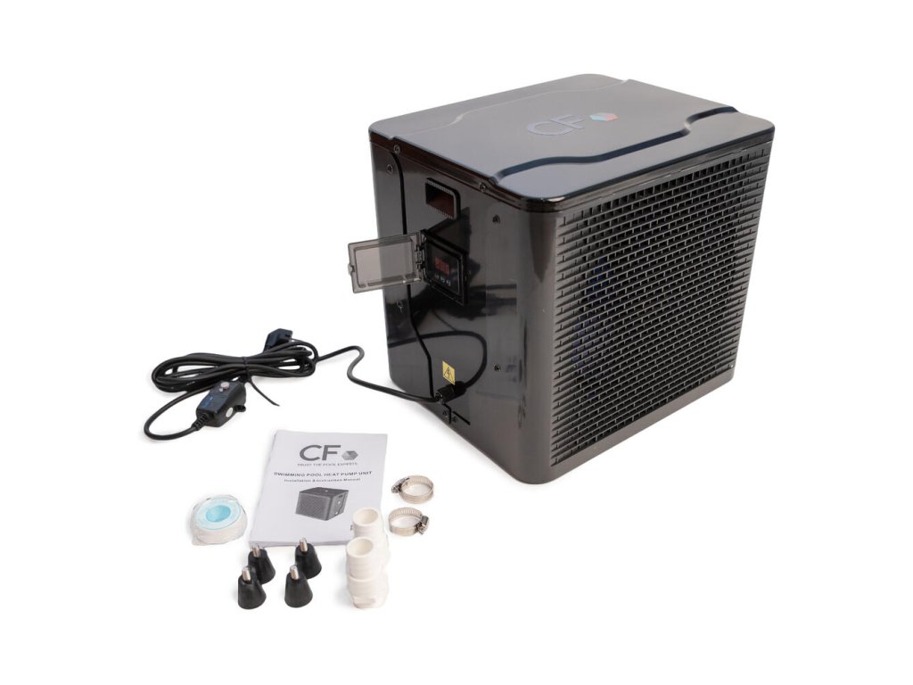 Tepelné čerpadlo sa ľahko uvádza do prevádzky, je už kompletne zmontované a pripravené na pripojenie k bazénovým hadiciam ø38/32 mm.