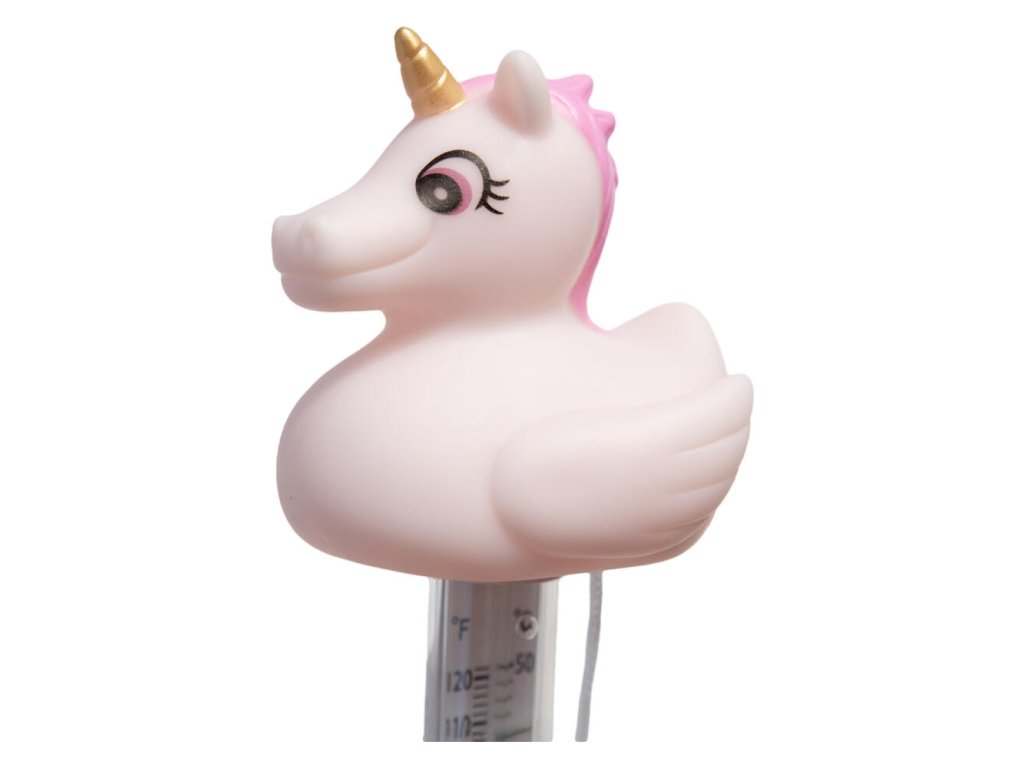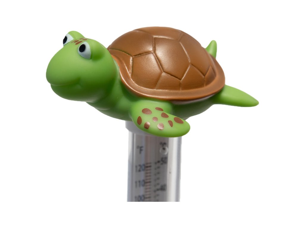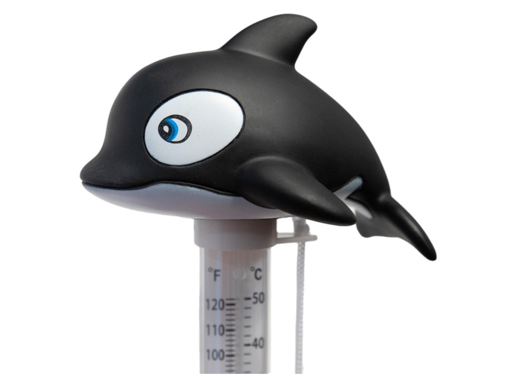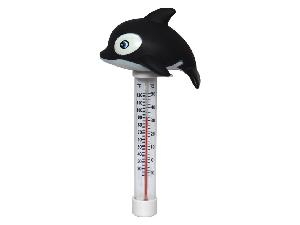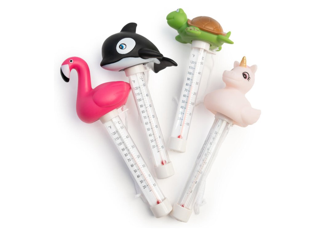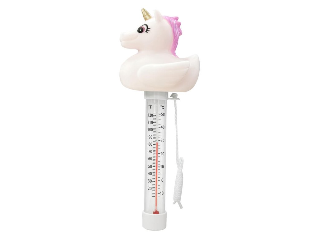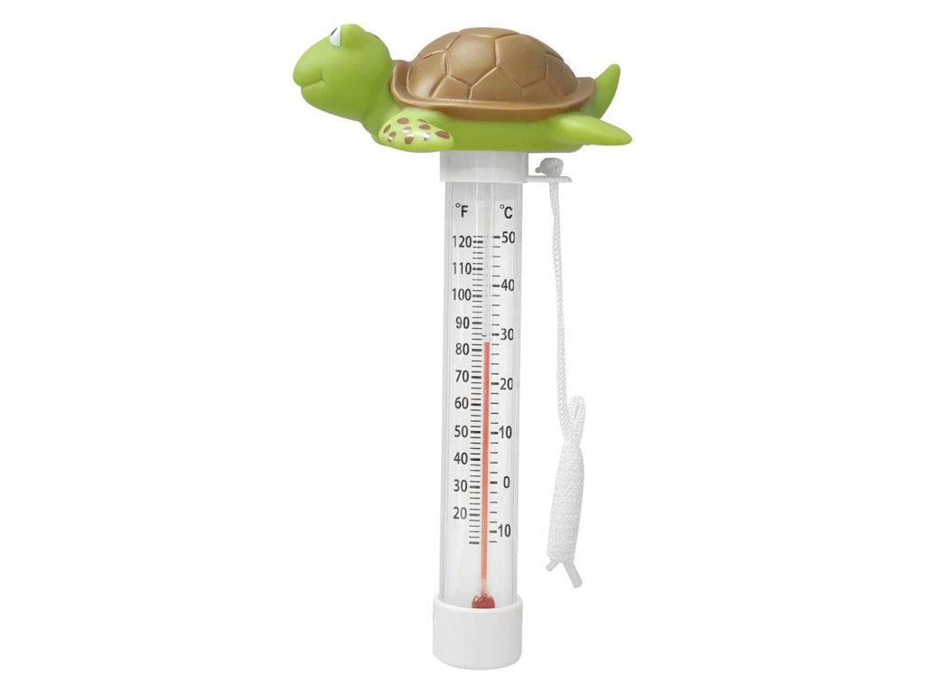 Plávajúci teplomer, ktorý meria teplotu vody v bazéne. Má šnúrku, vďaka ktorej ho môžete priviazať napríklad na schody.
