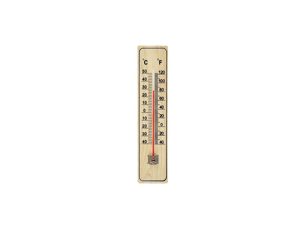 Vonkajší teplomer s dreveným podkladom, meria teplotu v rozsahu od 50°C do -40°C