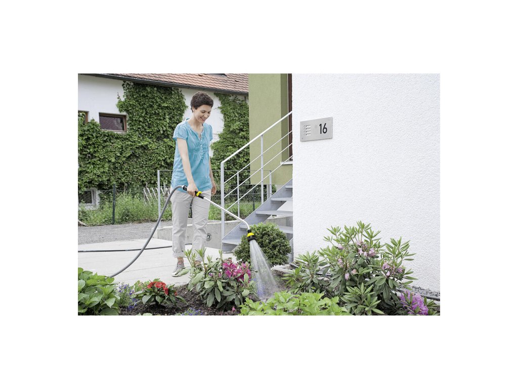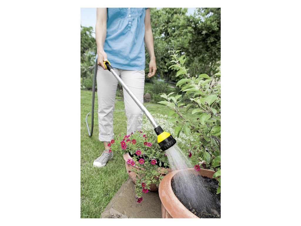 Ergonomický tyčový polievací nadstavec od firmy Kärcher je majstrovským dielom z hľadiska perfekcie a komfortu. Jeho všestranné možnosti využitia z neho robia univerzálneho pomocníka. Tyčový polievací nadstavec sa ideálne hodí na zavlažovanie malých a stredne veľkých plôch a záhrad. Vydarená kombinácia elegantného dizajnu, prvotriednej funkčnosti a perfektnej ergonómie presviedča na celej línii a robí z tyčového polievacieho nadstavca ideálny pracovný nástroj aj pre dlhšie trvajúcu prácu. Jednoducho povedané: Ideálne riešenie pre pohodlné postrekovanie v záhrade. Polievacie nadstavce Kärcher sú kompatibilné so všetkými dostupnými klik-systémami. Detaily výbavy: Nastavenie prietoku vody jednou rukou (vrát. funkcie vypínania a zapínania), 6 tvarov rozstrekovaného prúdu