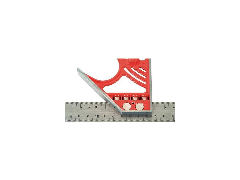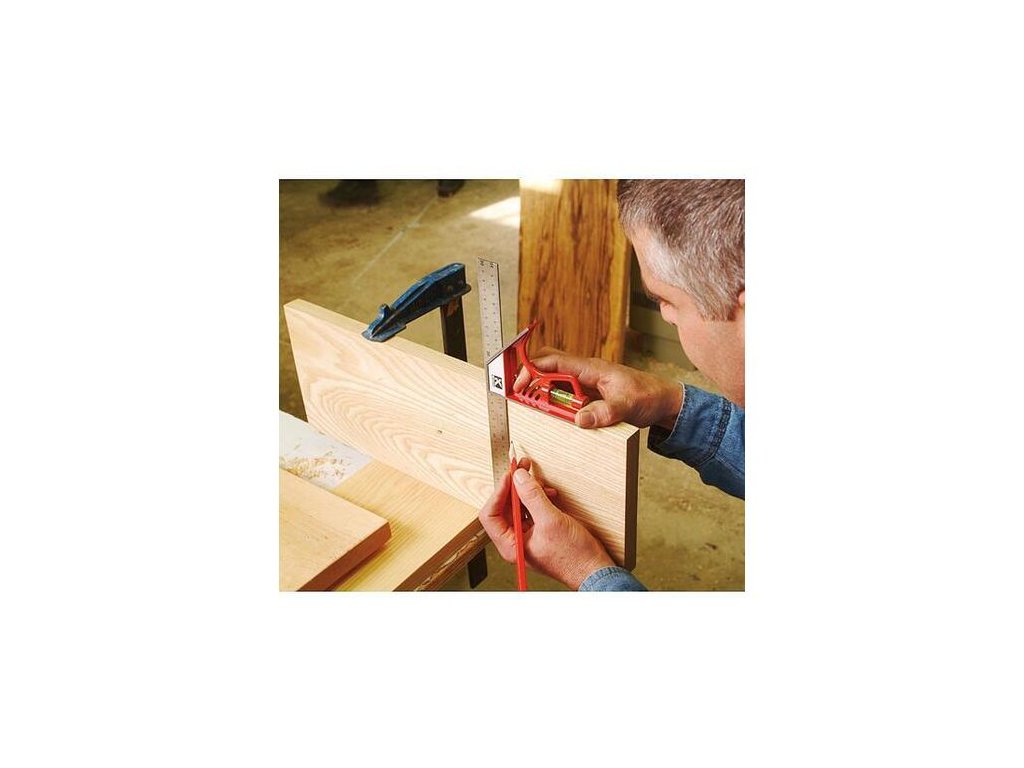 Uholník KAPRO® 325 je praktickým nástrojom na presné označenie uhlov. Svoje využitie nájde pri práci so sadrokartónom, pri rámovaní alebo pri tesárskych prácach. Údaje na pravítku z nerezovej ocele sú označené v palcoch aj v centimetroch. Uholník sa vyznačuje pevným, pozinkovaným telom a piatimi frézovanými stranami. Vybavený je praktickou libelou a magnetickým zámkom.