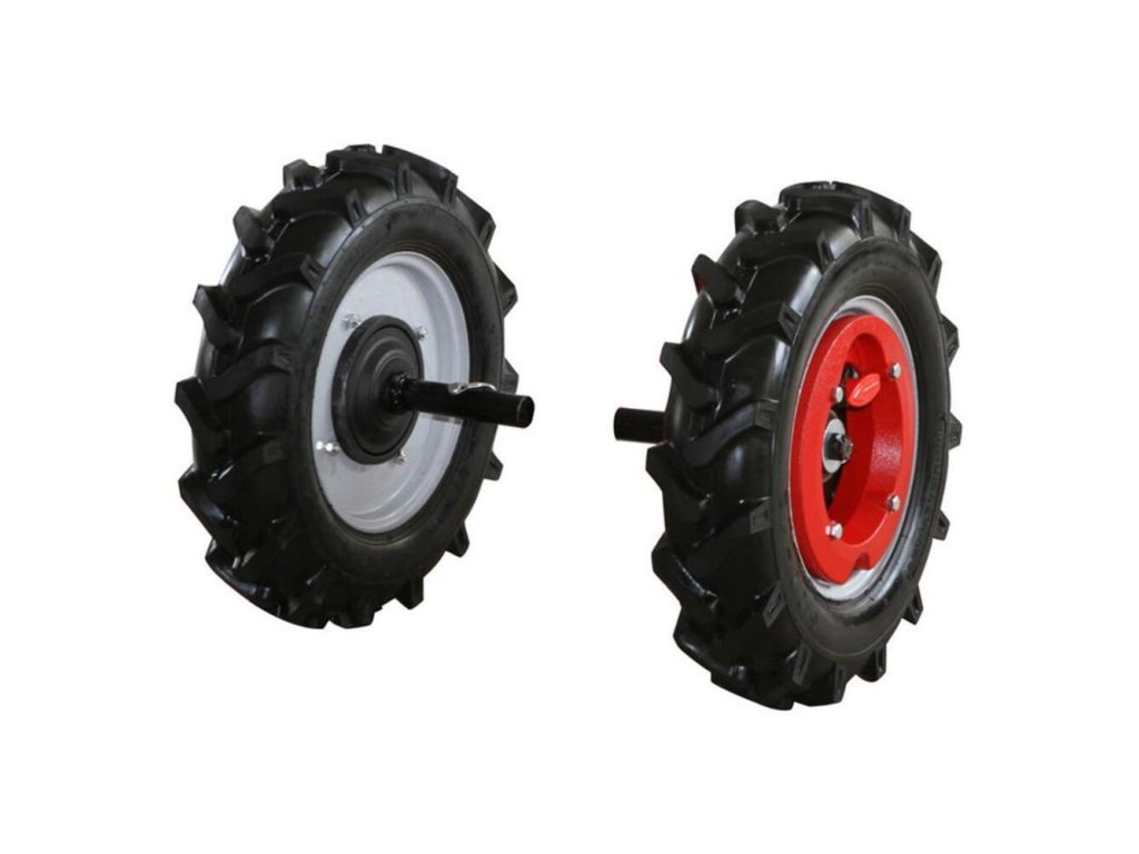 Ťažnú nápravu tvoria 12 palcové kolesá s dezénom pneumatiky