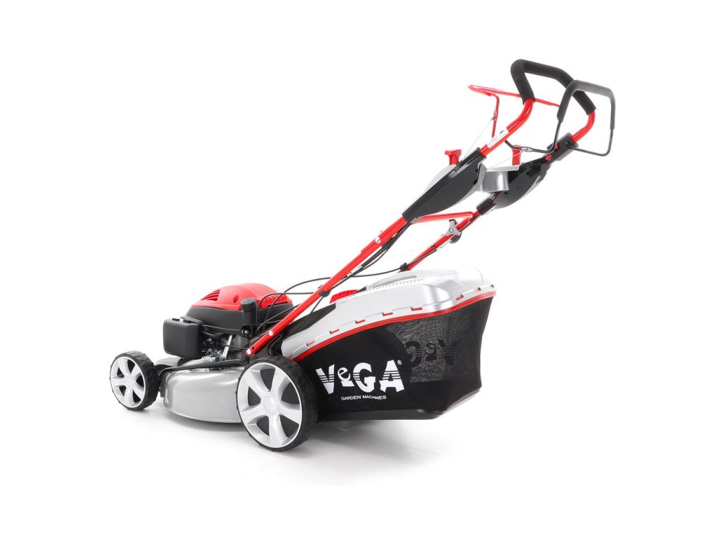 Veľké zadné a predné kolesá sú namontované v dvojitých guľôčkových ložiskách a centrálne nastavenie výšky kosenia je pre značku VeGA samozrejmosťou.