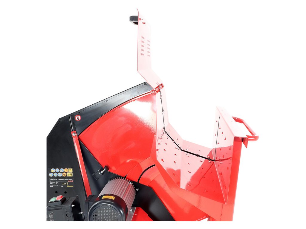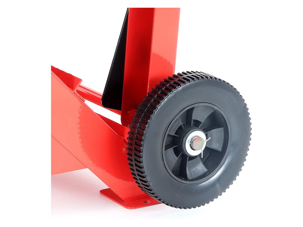 Bezpečné rezanie zabezpečuje konštrukcia podstavca a pohyblivý kryt, ktorý zakrýva pílový kotúč počas celého procesu rezania. Podstavec je vybavený špeciálnym reliéfom, ktorý zabraňuje otáčaniu polena. Pre pohodlnú manipuláciu sú k dispozícii prepravné kolieska.