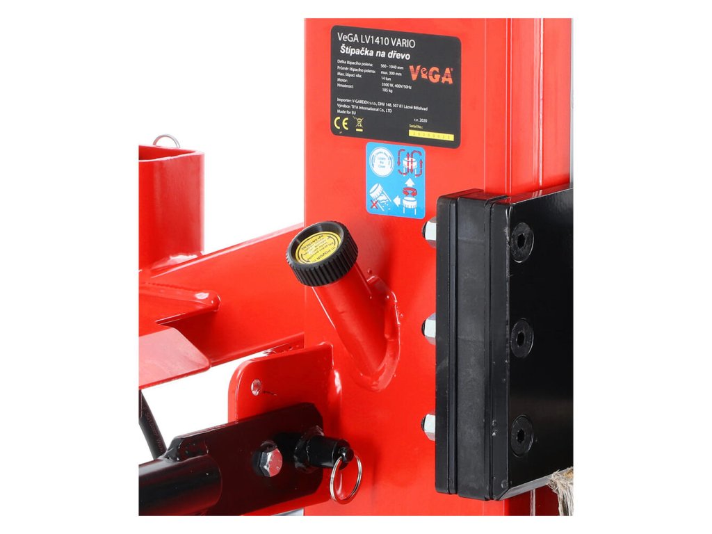 Rozštiepač dreva VeGA LV1110PRO VARIO spĺňa novú normu EÚ pre bezpečnosť pri práci. Okrem štandardného ovládania oboma rukami bolo pridané nové, väčšie ochranné rameno a transportné koleso na vodiacich rukovätiach pre ľahkú prepravu rozštiepača dreva. Ľavá ovládacie páka je vybavená zariadením, ktoré zabezpečuje stabilitu polena.