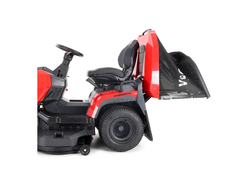 Napriek nižšej cene ponúka pracovný záber 92 cm a veľký 280-litrový kôš, čo z neho robí efektívny stroj. Hydrostatická prevodovka zaisťuje komfortné ovládanie. Traktor je vybavený elektromagnetickou spojkou nožov, LED svetlami a možnosťou kosenia pri cúvaní.