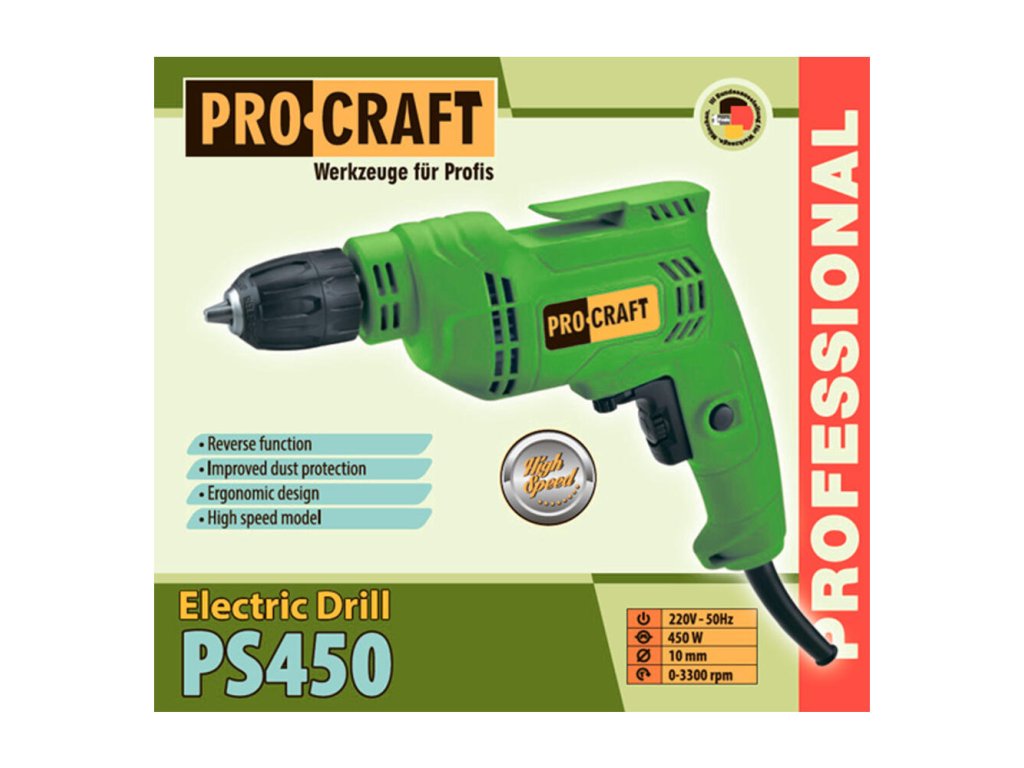 Procraft PS450 je ideálna pre vŕtanie do dreva, kovu a plastov, čím pokrýva širokú škálu bežných remeselníckych úloh. Jej kompaktný dizajn a precízna konštrukcia ju robia vhodnou na použitie v domácich dielňach aj na profesionálnych stavbách.