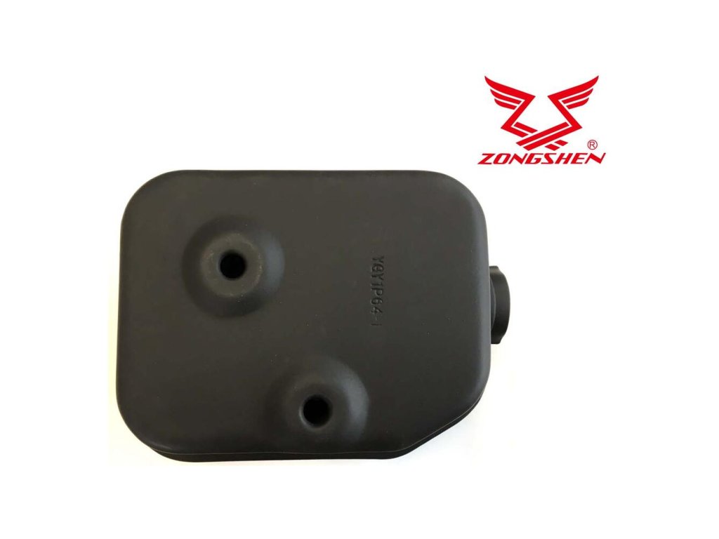 Štandardný tlmič výfuku pre vertikálne motory Zongshen XP200. Tento diel je často potrebné vymeniť kvôli korózii spôsobenej vlhkosťou a spalinami.