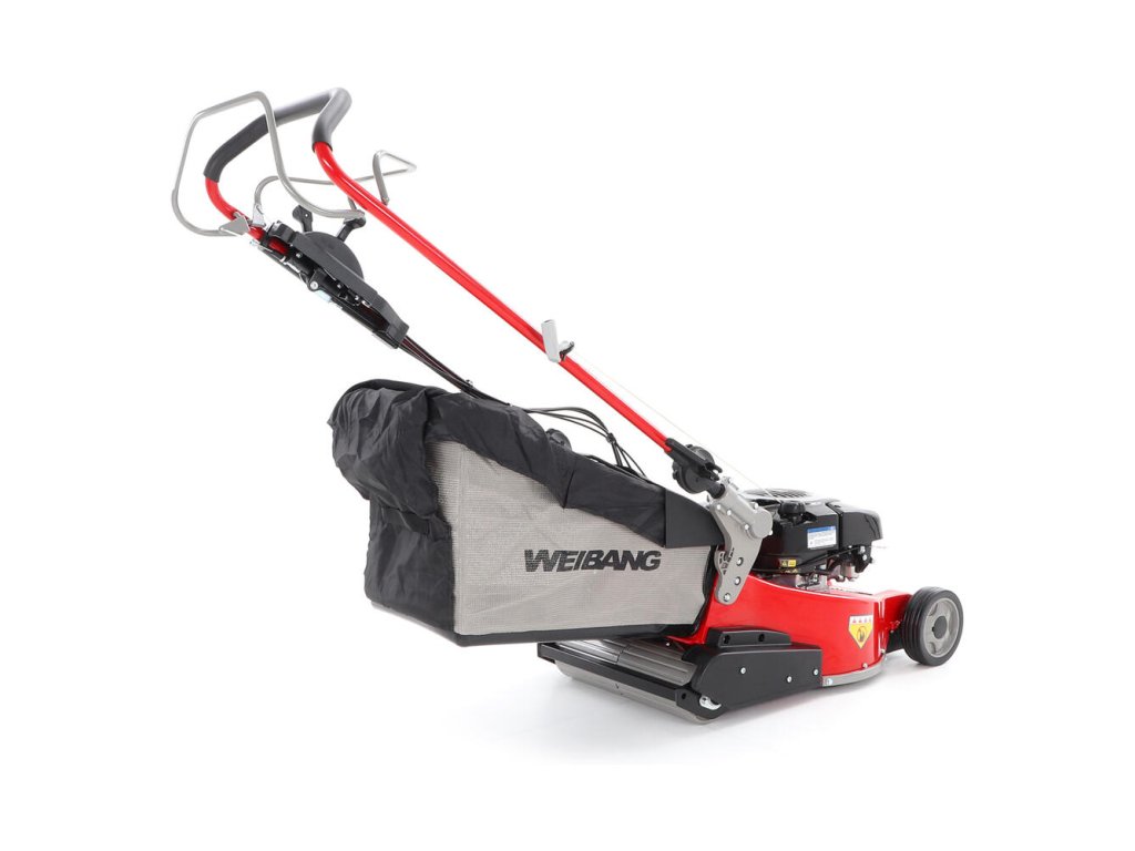 Chceli by ste mať na svojom trávniku anglické pruhy ako na futbalovom štadióne? To dokáže len táto kosačka s kovovým deliteľným valcom. Tento stroj má kovový deliteľný valec namiesto zadných kolies, ktorý vytvára pruhy na trávniku. Tento kovový deliteľný valec je poháňaný reťazou. Vďaka motoru Briggs and Stratton má kosačka dostatočne výkonný motor. Kosačka má šírku kosenia 480 mm a variabilnú rýchlosť jazdy. Kosačka Weibang 486 SBV-R je určená na údržbu plôch od 1000 do 3000 m².