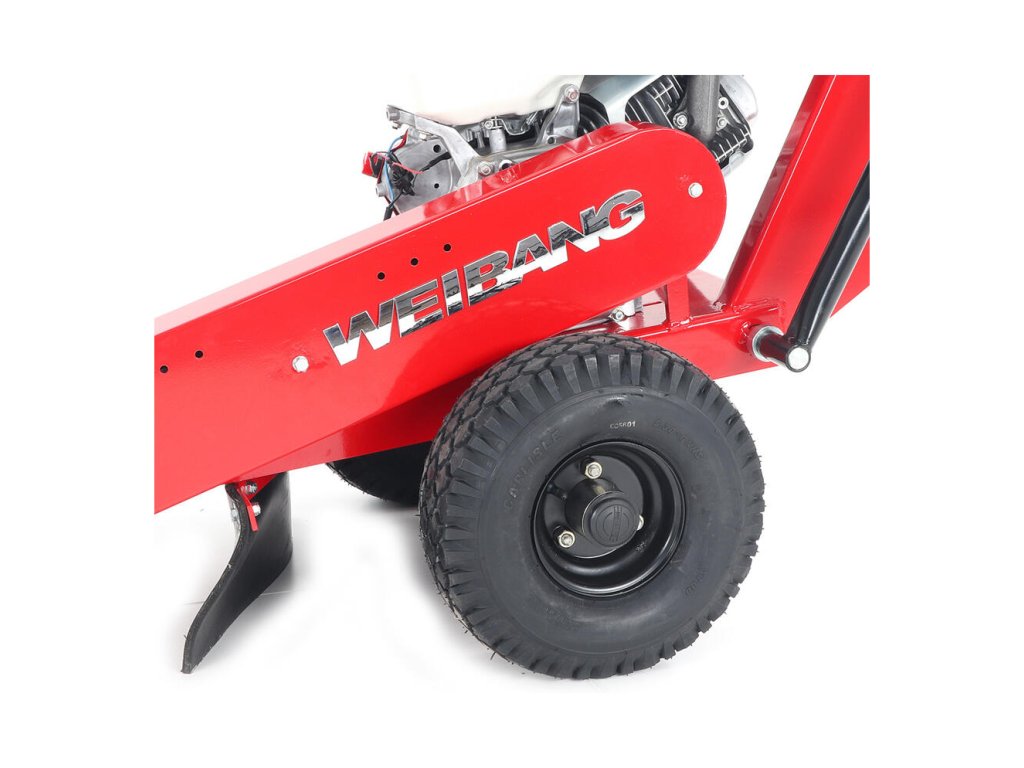 WEIBANG WB SG13H je profesionálna fréza na pňe určená na efektívne a rýchle odstraňovanie pňov nad a pod úrovňou terénu. Je poháňaná spoľahlivým motorom Honda GX390H1 s výkonom 13 HP, ktorý poskytuje dostatočný výkon pre náročnú prácu v teréne. S objemom palivovej nádrže 6,1 litra umožňuje dlhú prevádzku bez potreby častého dopĺňania paliva.
