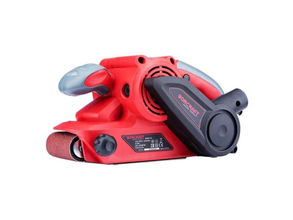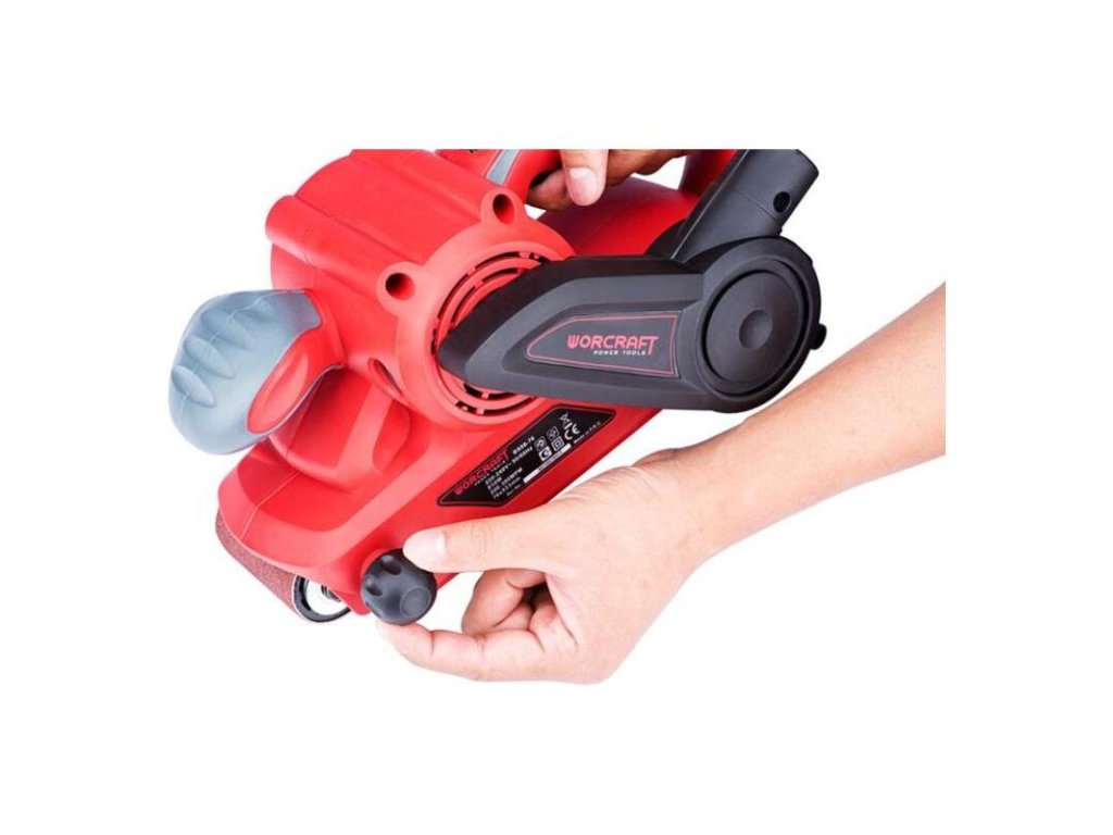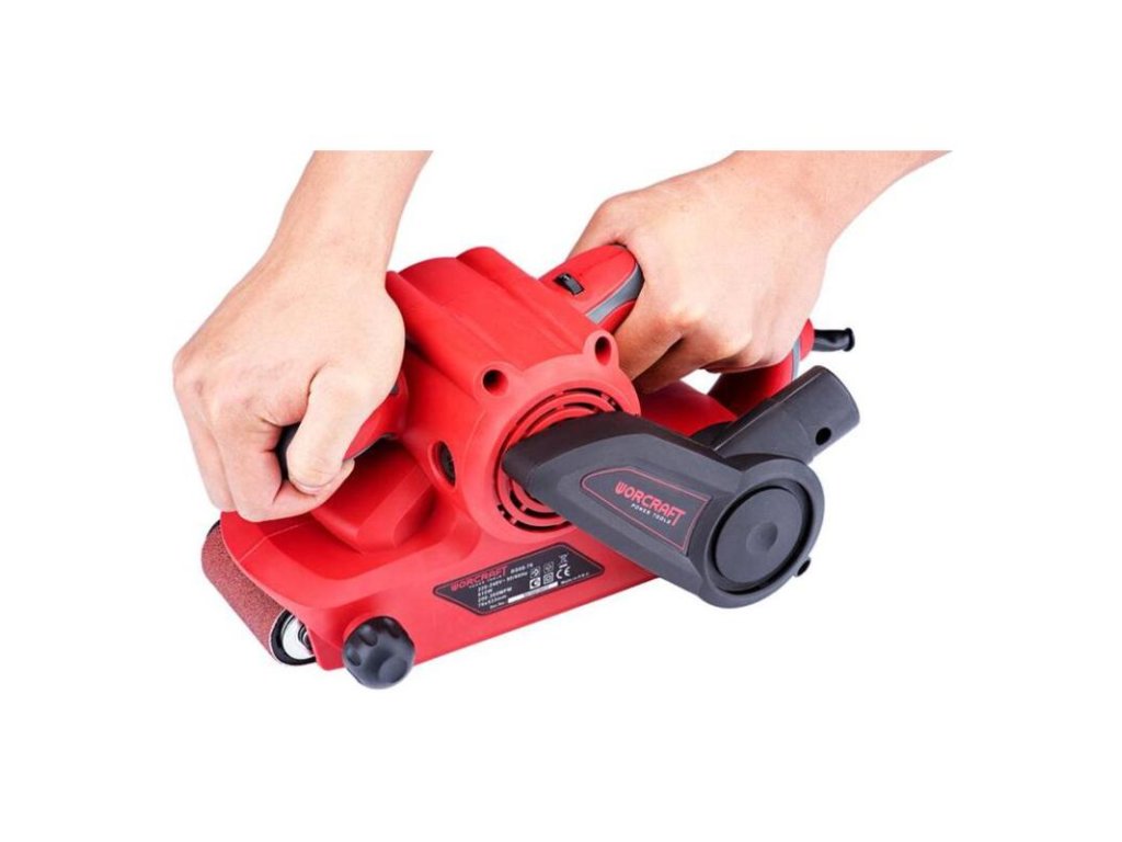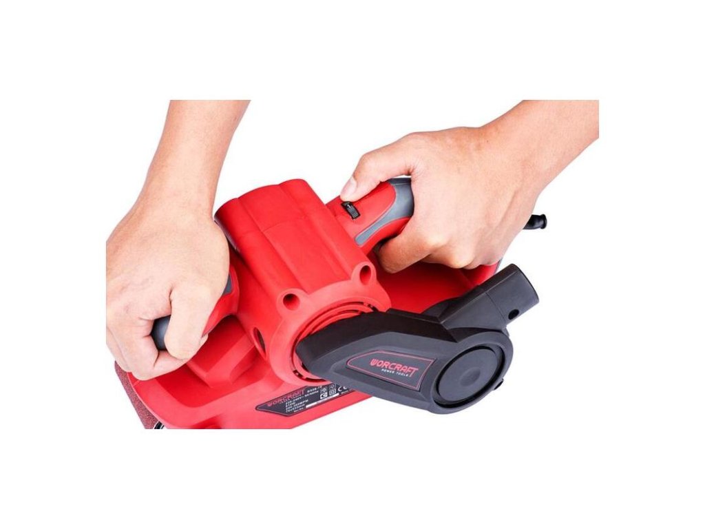 Výkonná elektrická pásová brúska Worcraft BS08-76 s príkonom 810 W je skvelým pomocníkom každého kutila pri suchom brúsení. Je vhodná na odstraňovanie materiálov z dreva, plastu, kovu, atď. O komfortnú prácu s pásovou brúskou sa postarajú protišmykové pogumované rukoväte, jedna menšia vpredu a jedna veľká vzadu.