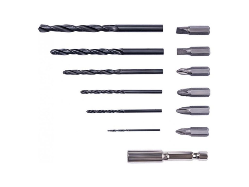 - Skrutkovač je dodávaný v kufríku so základnou sadou vrtákov a bitov.