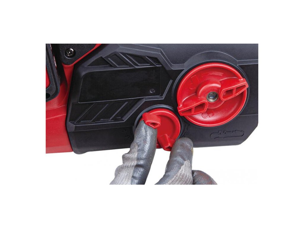 Otáčky reťaze dosahujú 15 m/s a o jej upevnenie sa postará rýchloupínací systém na bočnej strane píly. Údržbu uľahčí doplnková funkcia automatické mazanie reťaze a pridaný chránič zabezpečí bezpečnosť pri práci. Lišta je dlhá 37 cm, ideálna veľkosť pre rezanie dreva a zároveň neobmedzuje pri používaní. Reťazová brzda s uzamykacím tlačidlom pre ON/OFF prepínač zvyšujú bezpečnosť. Olejová nádrž píly má objem 250 ml a ako bonus ponúka ukazovateľ stavu náplne oleja.