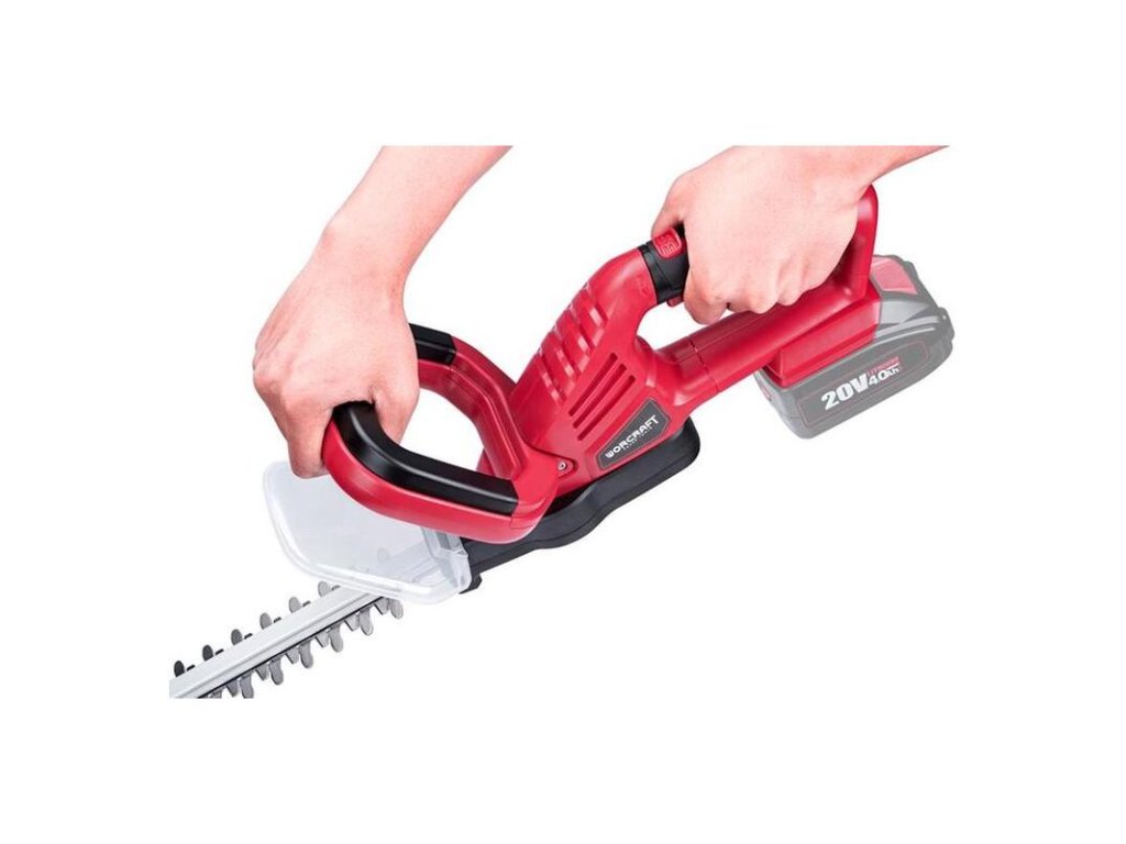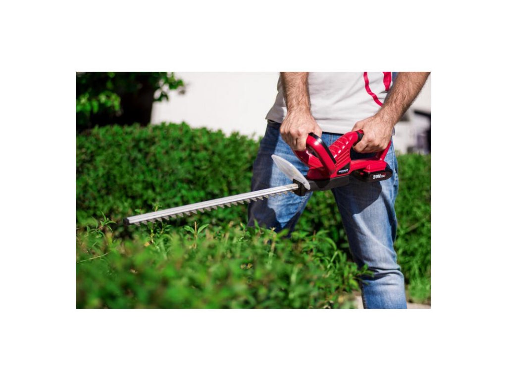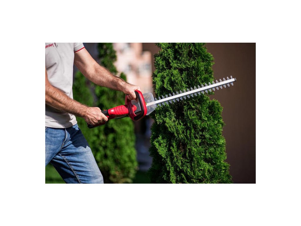 Akumulátorové nožnice Worcraft CHT-S20LiA sú určené výlučne na strihanie živých plotov, kríkov a krovín. Nožnice s lištou dlhou 51 cm disponujú dĺžkou zuba 20 mm. Preto je pred použitím akumulátorových nožníc potrebné odstrihnúť všetky vetvy s priemerom väčším než 20 mm nožnicami na konáre! Výkonné nožnice pracujú rýchlosťou 1200 otáčok za minútu. Nožnice sú vybavené protišmykovou rúčkou, ktorá zaisťuje pevné a pohodlné uchopenie. Bezpečnostná čepeľ má zaoblené boky pre zníženie nebezpečenstva poranenia. Dodatočná ochrana proti nárazom zabráni nepríjemnému spätnému rázu, keď sa čepeľ dostane do styku s múrom alebo plotom. Nožnice sa nabijú za 1 - 1,5 hodiny. Akumulátor a nabíjačka nie sú súčasťou balenia!