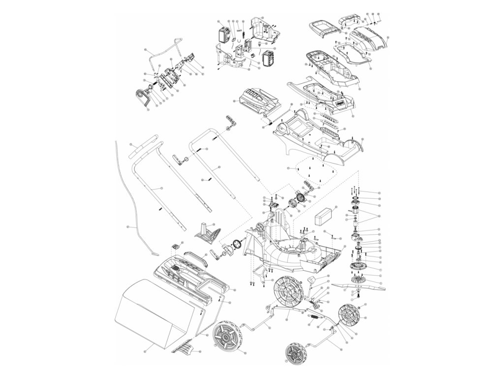 Zdrojom energie sú dva kvalitné Li-ion akumulátory. Kosačka pracuje rýchlosťou až 3300 otáčok/ min. Šírka záberu pri kosení dosahuje 43 cm a rezná výška je 25 až 75 mm/6 stupňov. Akumulátorová kosačka disponuje zberným košom s objemom 45 litrov.