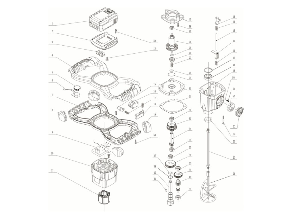 - Akumulátorové miešadlo 2 rýchlostné bolo navrhnuté na rozmiešavanie tekutých a práškových stavebných materiálov ako sú farby, malta, lepidlo, omietky a podobné substancie.