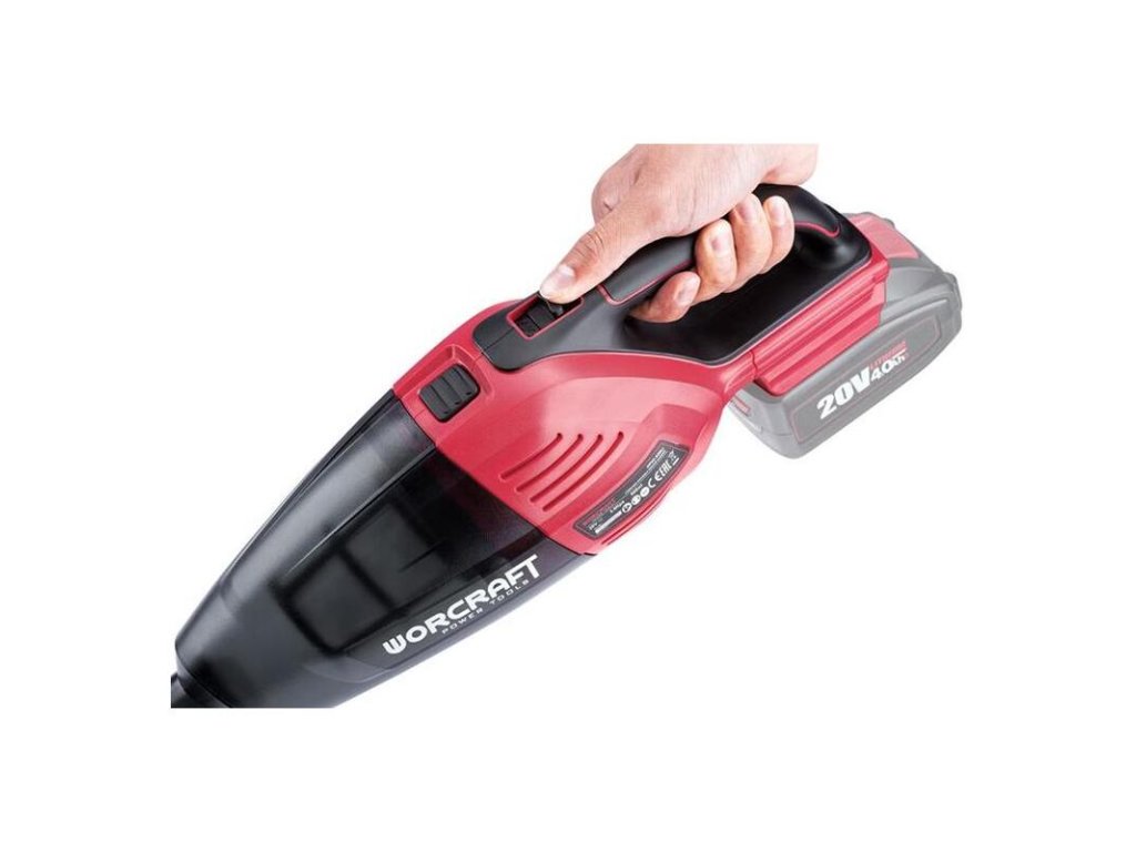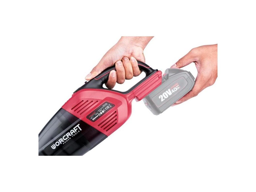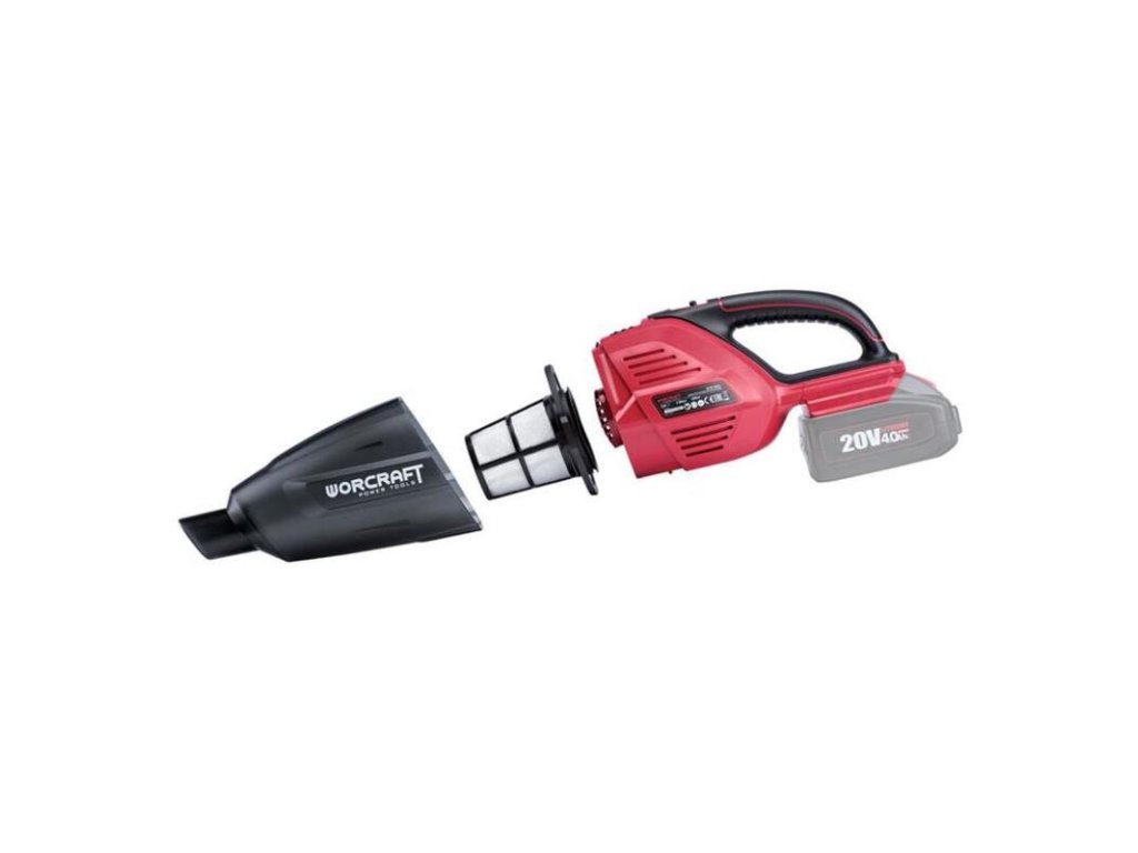 Akumulátorový prenosný vysávač Worcraft CPVC-S20Li je určený na vysávanie zdraviu neškodlivých suchých hmôt. Vysávač je určený výlučne na používanie v domácnosti. Odolná zberná nádoba disponuje objemom 500 ml. Výkonný vysávač poskytuje podtlak => 3,8 kPa. Je vybavený textilným filtrom a prekvapí svojou nízkou hmotnosťou. Zapína a vypína sa jednoducho, pomocou ON/ OFF tlačidla. Uvoľňovacie tlačidlo slúži na uvoľnenie zbernej nádoby. Bežný čas nabíjania batérie je cca 1 – 1,5 hodiny. Batéria je tepelnou poistkou chránená proti prebitiu, preto môže v nabíjačke zostať dlhší čas bez poškodenia (však, nie dlhšie ako 24 hodín).