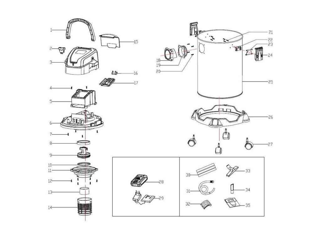 Akumulátorový vysávač Worcraft CVC-S20Li-20L je určený na mokré aj na suché vysávanie. Je vhodný na použitie v domácnosti ale aj ako priemyselný vysávač. Odolná zberná nádoba je vyrobená z nerezovej ocele a ponúka objem 20 L. Výkonný vysávač poskytuje podtlak =< 8 kPa. Disponuje hadicou dlhou 1,5 metra, ktorej priemer je 32 mm. Akumulátor a nabíjačka nie sú súčasťou balenia!