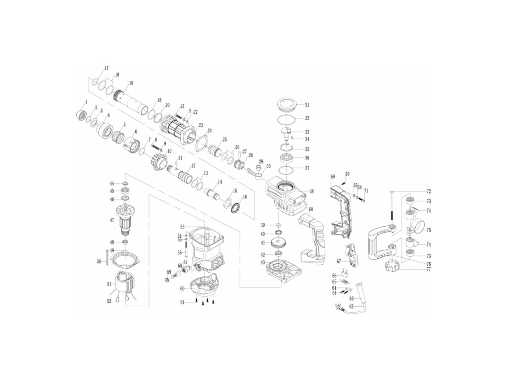 Kladivo obsahuje ochrannú manžetu, ktorá zabraňuje vo veľkej miere vnikaniu prachu do skľučovadla, čím zvyšuje jeho životnosť. Práca s kladivom bude komfortná vďaka prídavnej rukoväti. Súčasťou príslušenstva sú aj uhlíky, kľúče a mazivo. K dispozícii je plochý a špicatý sekáč. Kladivo je výbornou voľbou pre každého domáceho majstra aj profesionálna.