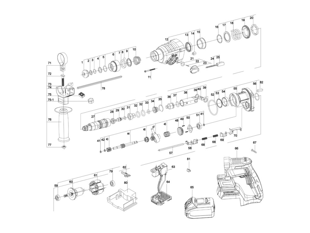 Kladivo poskytuje množstvo praktických funkcií ako je vŕtanie, vŕtanie s príklepom, sekanie. Taktiež je možné nastaviť uhol sekania, hĺbku vŕtania, smer otáčania a taktiež rýchlosť/ príklep. Kladivo je nutné používať s prídavnou rukoväťou. Pridávna rukovať uľahčuje prácu, poskytuje lepší úchop a je možné otáčať ju o 360°. Prepínač pre výber prevádzkového režimu umožňuje nastaviť vŕtacie kladivo pre rôzne režimy prevádzky: režim vŕtania do kovu a do dreva/ režim vŕtania s príklepom do betónu a kameňa/ režim sekania. Kĺzna spojka zastaví vreteno, ak sa príslušenstvo zasekne a vŕtacie kladivo je preťažené.