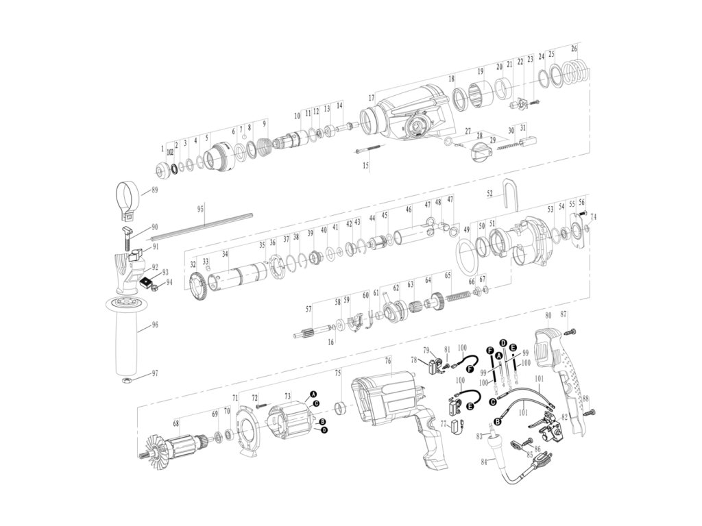 Kladivo má praktický ON/OFF vypínač, prepínač výberu funkcie vŕtania, okrem iného Vám umožňuje nastavovať rýchlosť príklepov (až do 4 800 za minútu) a dokonca i maximálnu rýchlosť vŕtania. Prácu Vám uľahčí aj prídavná rukoväť navrhnutá pre pravákov aj ľavákov.