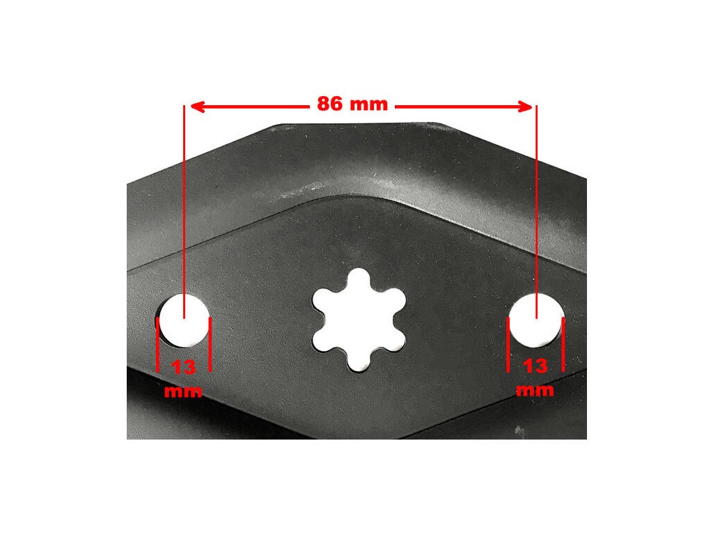 Pravý nôž do páru pre traktory Husqvarna 92 cm so zadným zberom. Má 6-cípu hviezdu v strede.