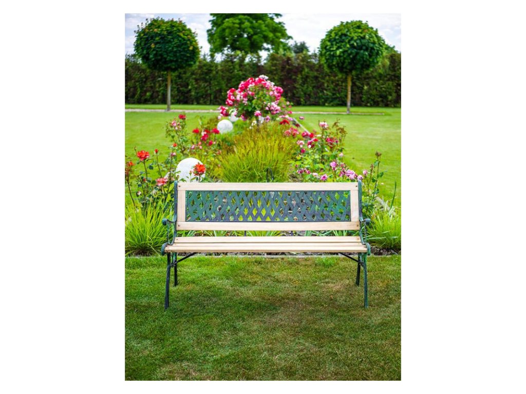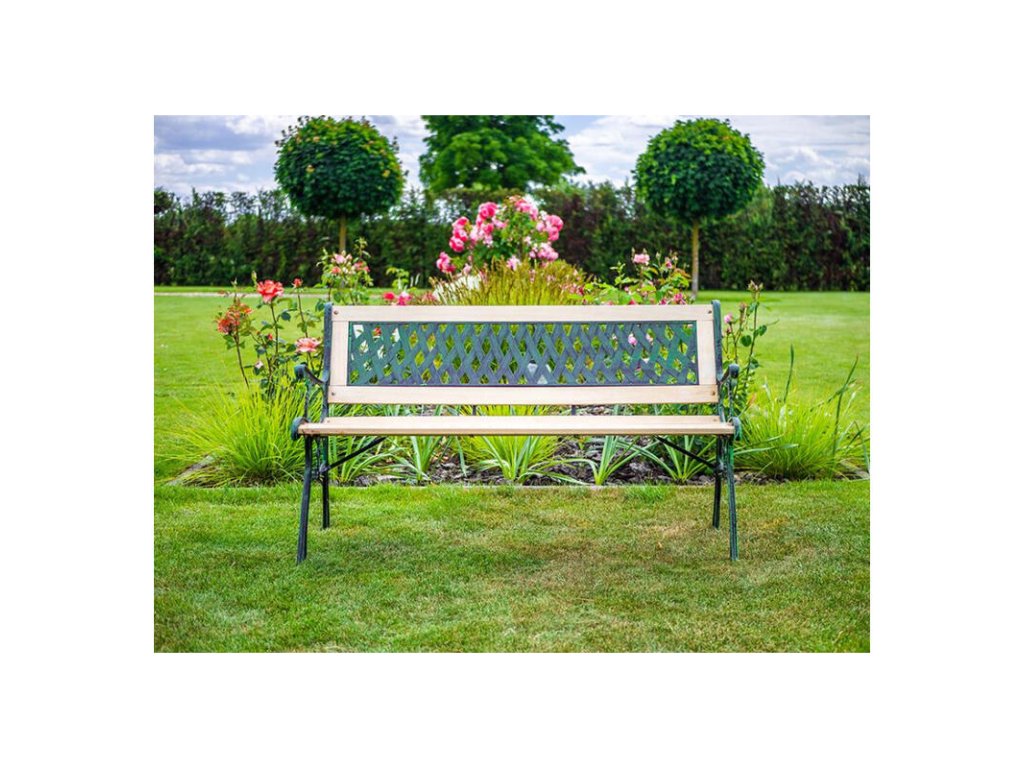 Záhradná lavička je pekným a praktickým doplnkom do každej záhrady. Lavička je vyrobená kombináciou dreva, plastu a kovu. Hlavná konštrukcia je pre poskytnutie dostatočnej pevnosti vyrobená z kovu. Zvyšné časti určené na opieranie a sedenie sú vyrobené z dreva a plastu. Kovové a plastové časti sú ladené do zaujímavej, tmavo-zelenej farby, ktorá v kombinácii s prírodným drevom vytvára skvelý dojem. Lavička má rozmery 120 x 55 x 75 cm a jej nosnosť je 150 kg.