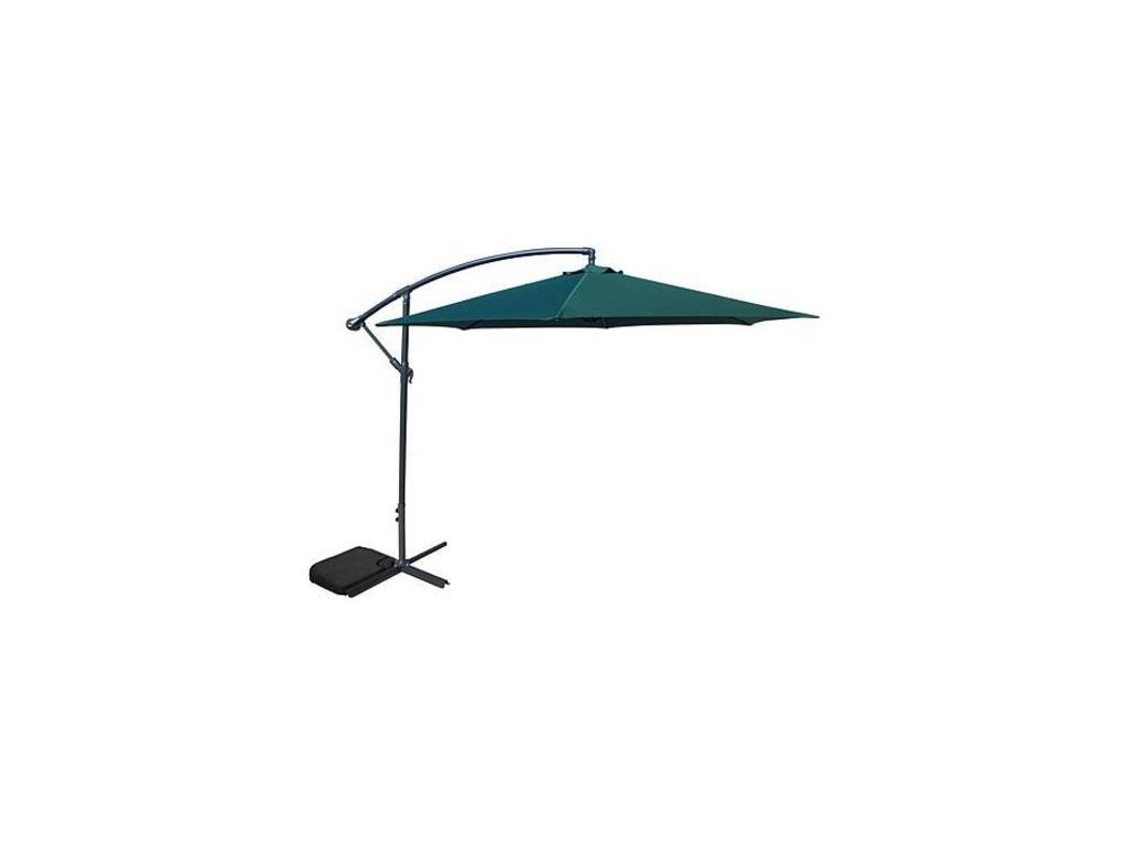 Slnečník je krásnej zelenej farby a je ideálnym prostriedkom na ochranu pred horúcim slnkom počas letných dní. Hlavná konštrukcia sa nachádza na bočnej strane a je vyrobená z pevnej ocele. Priemer podpornej tyče je 48/42 mm. Požadovanú výšku je možné nastaviť si pomocou kľučky na tyči. Priemer rebier, ktoré sú podporou pre vrchnú časť, je 12x18 mm. Vrchné pokrytie je vyrobené z polyesteru, ktorý je veľmi odolný voči slnečnému žiareniu a iným vonkajším vplyvom. V tejto vrchnej časti sa taktiež nachádza vetrací otvor, čo oceníte aj pri nastavení nižšej výšky. Priemer vrchnej časti je až 300 cm, čím poskytuje veľké pokrytie. Výhodou je takisto umiestnenie tyče, vďaka čomu si pod slnečníkom môžeme rozložiť stôl, deku alebo lehátko. Celková hmotnosť je 12,1 kg. Je možné ho umiestniť kdekoľvek, podľa vašich požiadaviek, či už na betón alebo na trávnik, kvôli stojanu poskytujúcemu potrebnú stabilitu. Slnečník je bez možnosti náklonu a bez klapiek.
